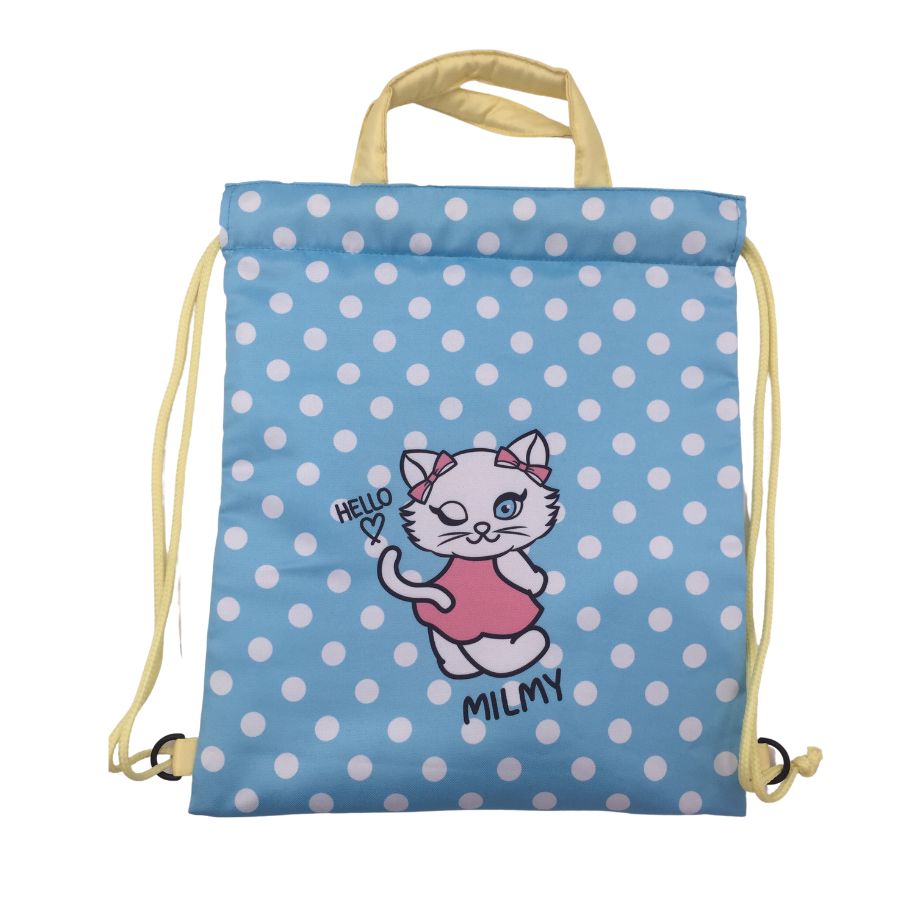品名 :帆布束口袋 儿童背包 材质 :棉布logo表现方式 :网印 , 热转印 , 刺绣 , 贴钻 , 数码印花 ,手工缝制立体蝴蝶结手提棉材质尺寸颜色皆可客制化
